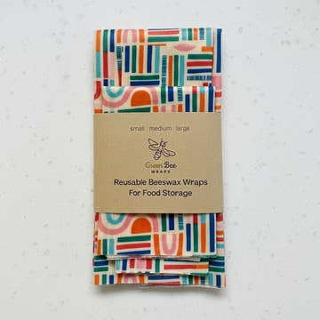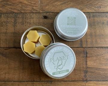 Renew your beeswax wrap or make your own with upcycled cotton fabric you have on hand! Our proprietary blend of beeswax (from our own bees), organic pine rosin, and organic jojoba oil make for beeswax wraps that are extra sticky, flexible, and long lasting! Use the QR code on the back of the 100% recyclable (or easily re-usable) packaging to find instructions on how to use it. One container is enough to cover one each of our small, medium, and large beeswax wraps (one Starter Set). We also accept container returns.