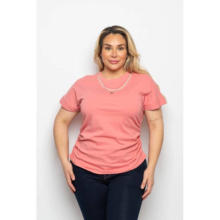 The ladies drop hem tee is a super-soft, eco-friendly staple that suits you from the office to the grocery store. This basic, relaxed fit tee features a scooped v-neck, a long body with a flattering drop hem and a charming pocket. This basic is stylish enough to stand alone but really pops when layered with our ribbed cardigan. The USA made eco-friendly fabric includes five recycled water bottles and is a slightly heavier weight than many triblends, keeping this shirt looking great wash after wash. When you go with GOEX, you're making an impact on the environment. PLUS you are helping to sustain dignified, fair wage jobs that help families stay together. You’ll feel twice as good about adding this basic tee to your wardrobe. This garment is a customizable tee. We offer screen print options if you'd like to add decoration.