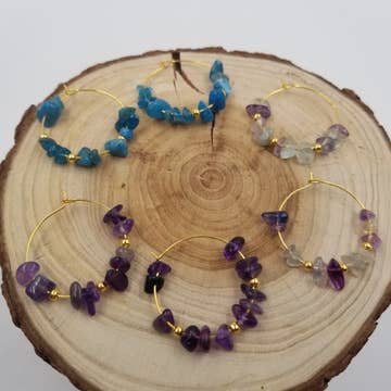 Stainless Steel Hand-wound Natural Gravel Hoop Earrings