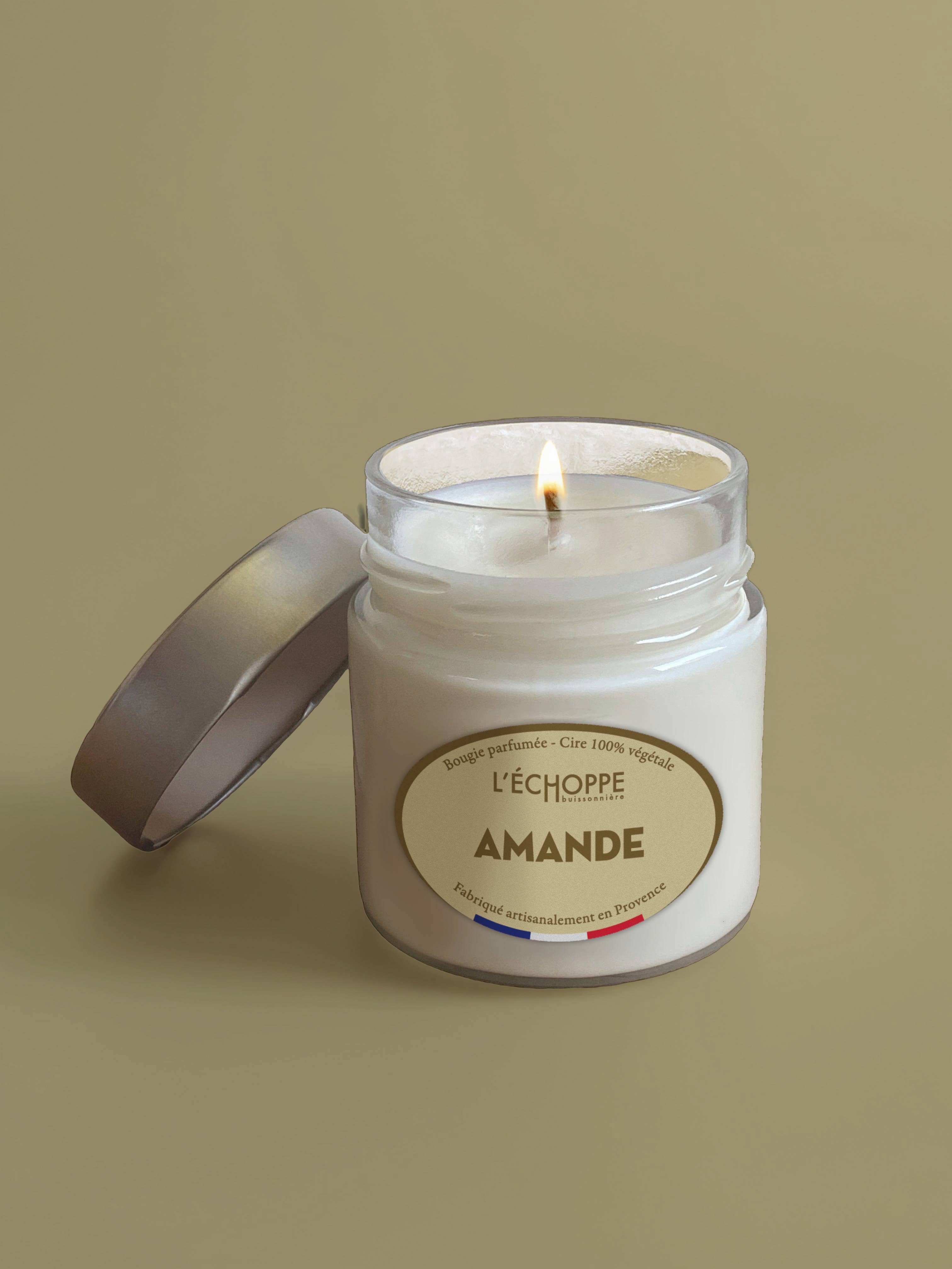 ROUND GLASS JAR + METAL LID Scented candle 100% vegetable soy wax Cotton wick Burn time: 45 h Net weight: 180g Grasse fragrance Handmade in France Succumb to the nostalgia of funfairs with the Chouchou candle, with a scent of warm praline and caramelized sugar. A true return to childhood that evokes crispy nuts coated in golden sugar. Perfect for a festive and sweet atmosphere.