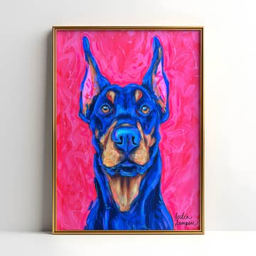 Doberman Dog Art Print, Pet Art, Maximalist Art, Dopamine Decor, Trendy Colorful Wall Poster