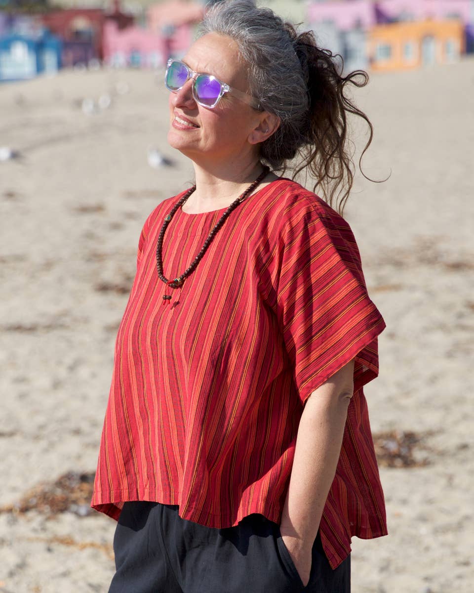 Lightweight cotton vest top made from our soft 'Kurta cotton' with a v-neck and natural coconut buttons – perfect for layering, summer outfits, or boho style. This breathable and versatile cotton vest is crafted from our signature Kurta cotton, known for its comfort and easy, lived-in feel. Designed with a flattering v-neckline and detailed with eco-friendly coconut shell buttons, it's ideal for wearing alone as a top, or layering over tanks or dresses. A staple for apparel boutiques or anyone seeking natural fiber fashion. * 100% cotton * size: S/M, L/XL * handmade in Nepal * SKU: ZZV2 Size Chest (in) Length (in) S/M 18-19 20-21 L/XL 19-20 21-22