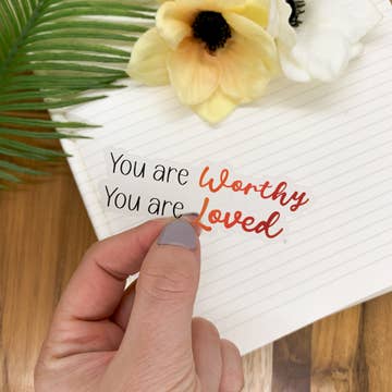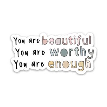 A cute and colorful quote sticker designed to empower more self-love and positive thinking. This is a waterproof sticker and can be placed pretty much anywhere, so this sweet reminder can be seen daily. WHAT YOU NEED TO KNOW: > 2.25" x 2.5" > Professionally manufactured > Printed on waterproof, glossy vinyl > Lightweight product – makes for low-cost shipping WHY CUSTOMERS BUY: > Colorful, fun and bold illustration > Self-love and empowering, positive reminder > Highly durable and waterproof; can be stuck anywhere, even on a water bottle I will happily place an order with my manufacturer should you wish to purchase more units than what is listed in stock. Please reach out to me for manufacturing and turnaround details.