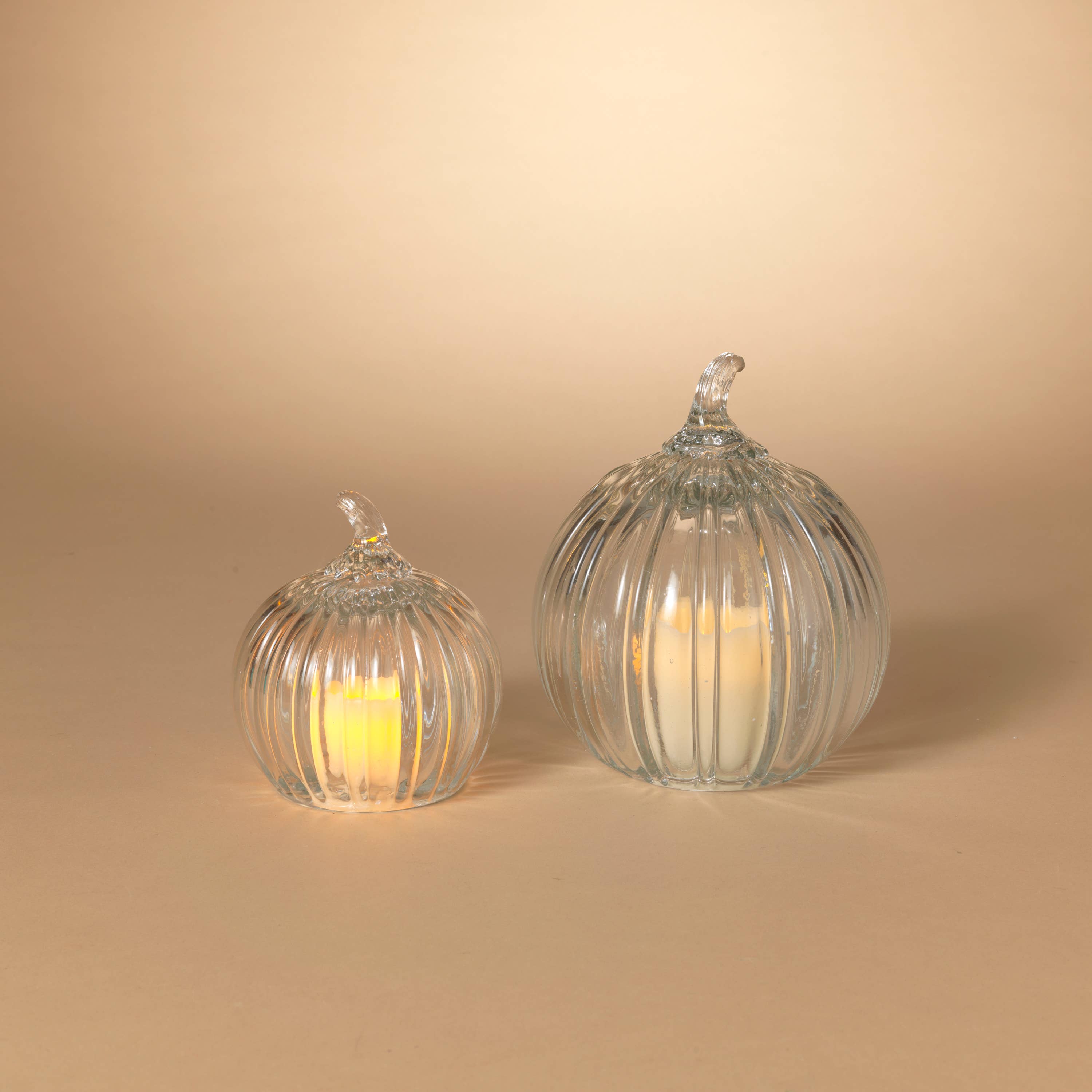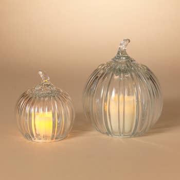 Pumpkins and Leaves Pillar with LED String Lights