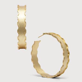 22k Gold plated / Sterling silver plated on Brass. Handmade in Nepal by Artisans using 2000 year old traditional methods. "Make A Bold Statement With These Elegantly Carved Golden Hoops, Blending Timeless Design With Nepali Heritage. Perfectly Proportioned As Big Hoops, They Feature Intricate Details That Highlight The Artistry Of Hand-Carved Craftsmanship, Adding A Touch Of Luxury To Any Outfit. Handmade In Nepal By Skilled Artisans, These Gold Hoop Earrings Reflect Mindful Craft And Ethical Design. Their Elegant Shapes And Refined Finish Make Them Versatile For Both Casual And Formal Occasions, Offering A Sophisticated Yet Effortless Style. Ideal As Thoughtful Gifts For Her, These Handmade Golden Hoops Celebrate Nepali Craftsmanship And Cultural Heritage. Whether As A Personal Keepsake Or A Meaningful Nepali Gift, These Earrings Are A Striking Symbol Of Tradition And Elegance." Handmade in Nepal by Artisans
