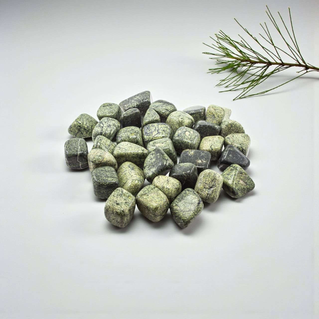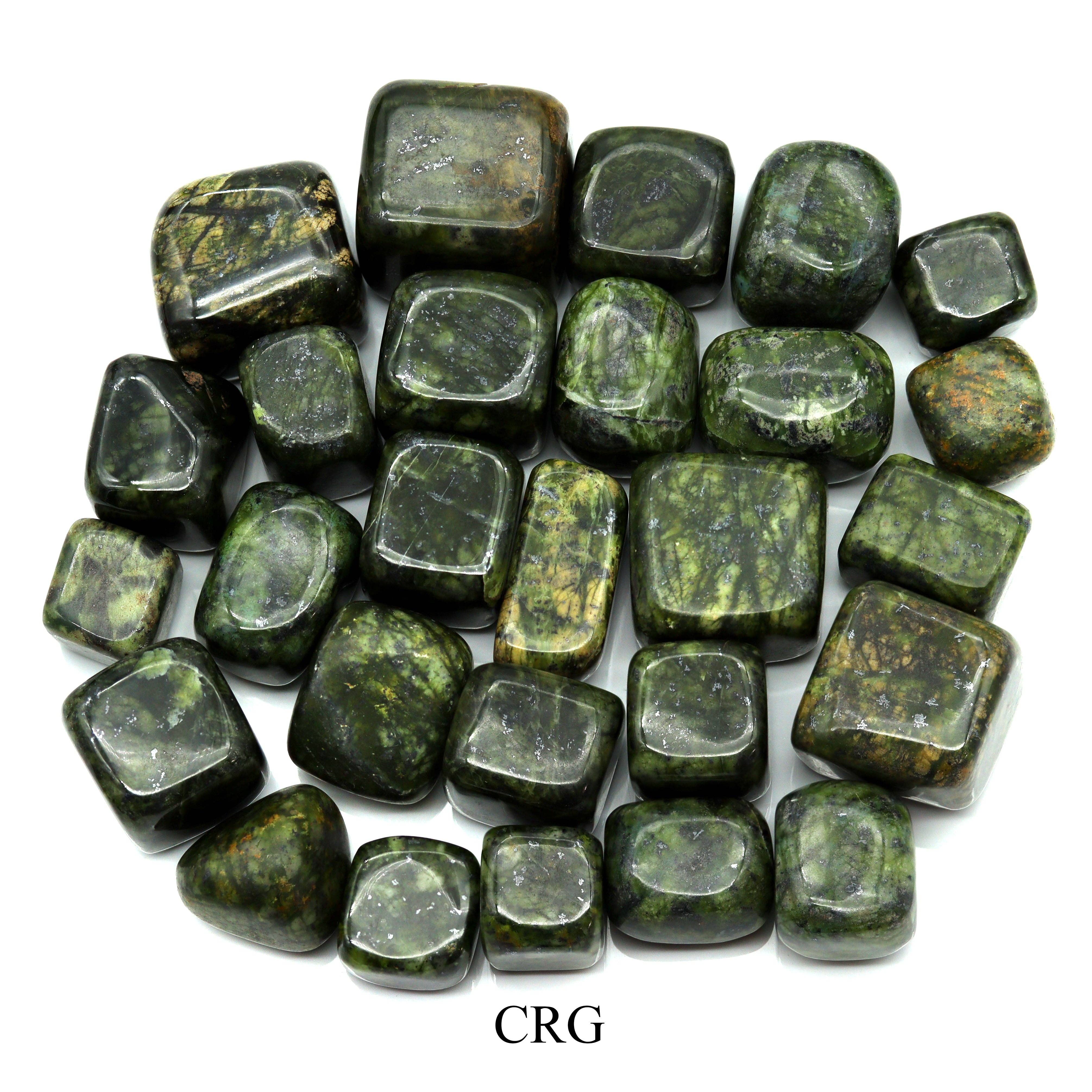 Stones Mined in India - Quality Control, Weighing, Packaging and all other aspects of this product produced in the USA. Why the Fantasia Brand: Fantasia Mining is a USA company located in Massillon Ohio, with a 90,000 sq ft warehouse and over 2,000,000 lbs of stones and stone products in stock. We have been in business since 2010 providing stone related products to stores around the world, and as mine owners ourselves, we care very deeply about the quality of the products that we provide. The Fantasia brand of Melarite rough is 100% natural and imported directly from our partner mine in India. Stone Size: 0.75" to 1.5" per piece avg. Pieces per lb: 13 to 25 pieces avg. Color: Green The sizes, pieces per lb, and colors are averages. It is possible to get pieces outside this range, or with other variances in shapes, color shades, patterns, clarity, translucency, number of pieces or other characteristics which can vary each time natural stones are mined.