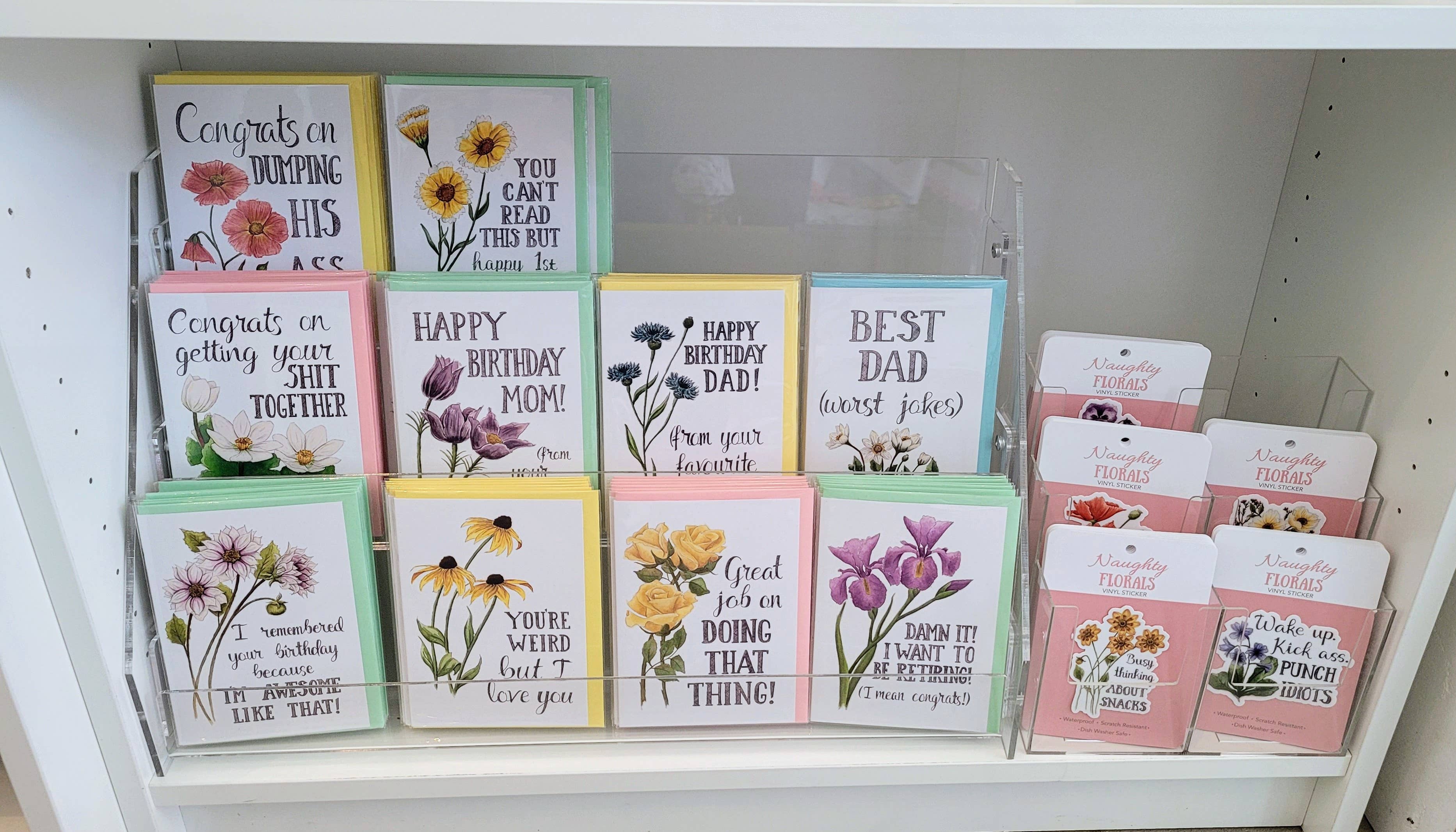My customers love these sassy stickers, magnets and cards. The fact that they are designed by a Canadian artist makes them even more special!
