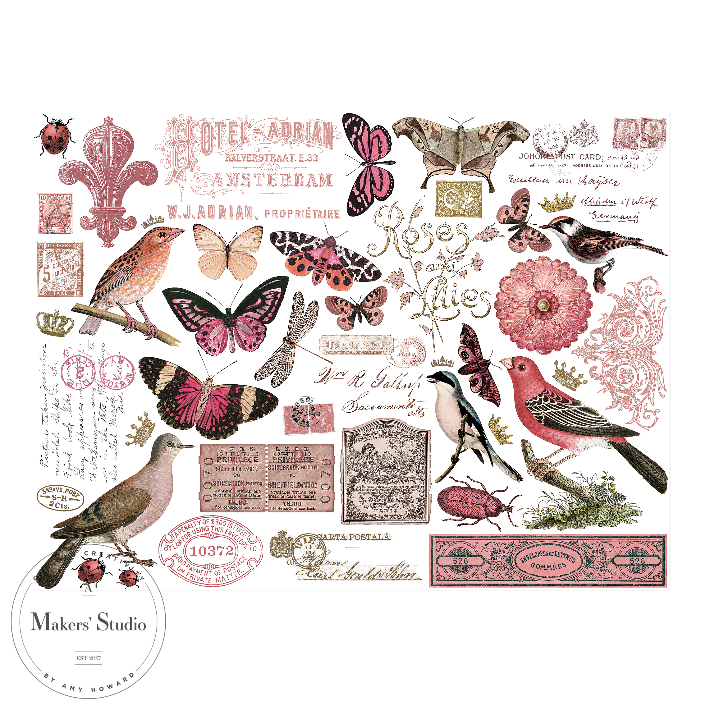 A Makers' Studio Color Transfers are a full-color ink image transfer that can be combined with a variety of surfaces to create endlessly customized DIY home décor. Enjoy the thrill of creating unique art quickly and easily with our full-color transfers. What you'll love: * Cut out sections or use the entire design. * Simply pick your project and watch your vision come to life as you rub the color design off of the sheet onto your clean surface. * You can transform glass, ceramic, wood, most painted finishes, paper....the possibilities are endless. * Start adding artistic elements to your furniture and accents without any drawing or painting skills!