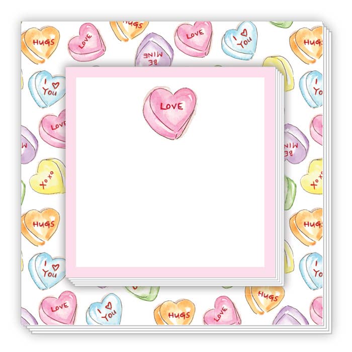 Featuring our new favorite rainbow hearts design, this notepad is the perfect accessory for anyone who loves LOVE. Beautiful bright white thick paper, 6"x 6", 100 heavyweight tear-off sheets, cardboard backing, and clear protective sleeve. All our notepads are printed on SFI and FSC certified paper. Designed in New England and printed in USA. ___________________________ .BY RAMUS & CO.