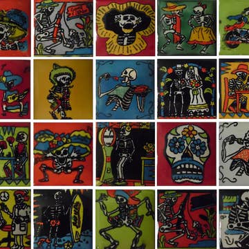 Wholesale Vibrant Sugar Skull Porcelain Tile Art - Day of the Dead Decor