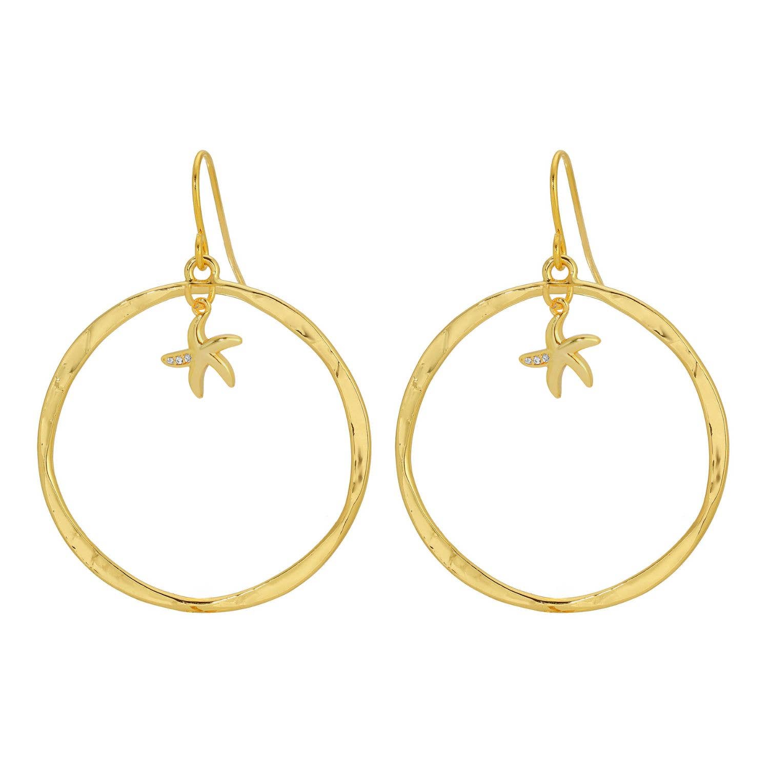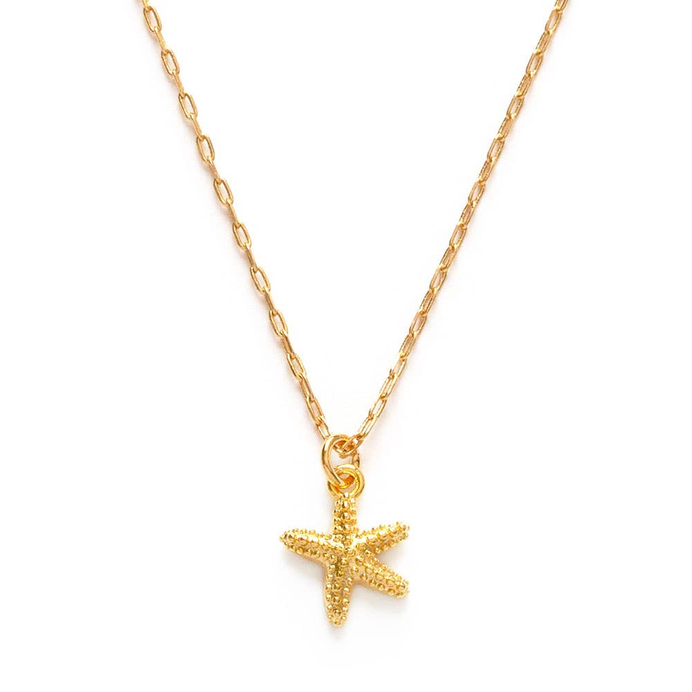 Small 3D starfish charm with chain going through 16" Necklace .34" Pendant 18k Gold Plated Brass Base Packaging: 'Quick-Display' Necklace Card