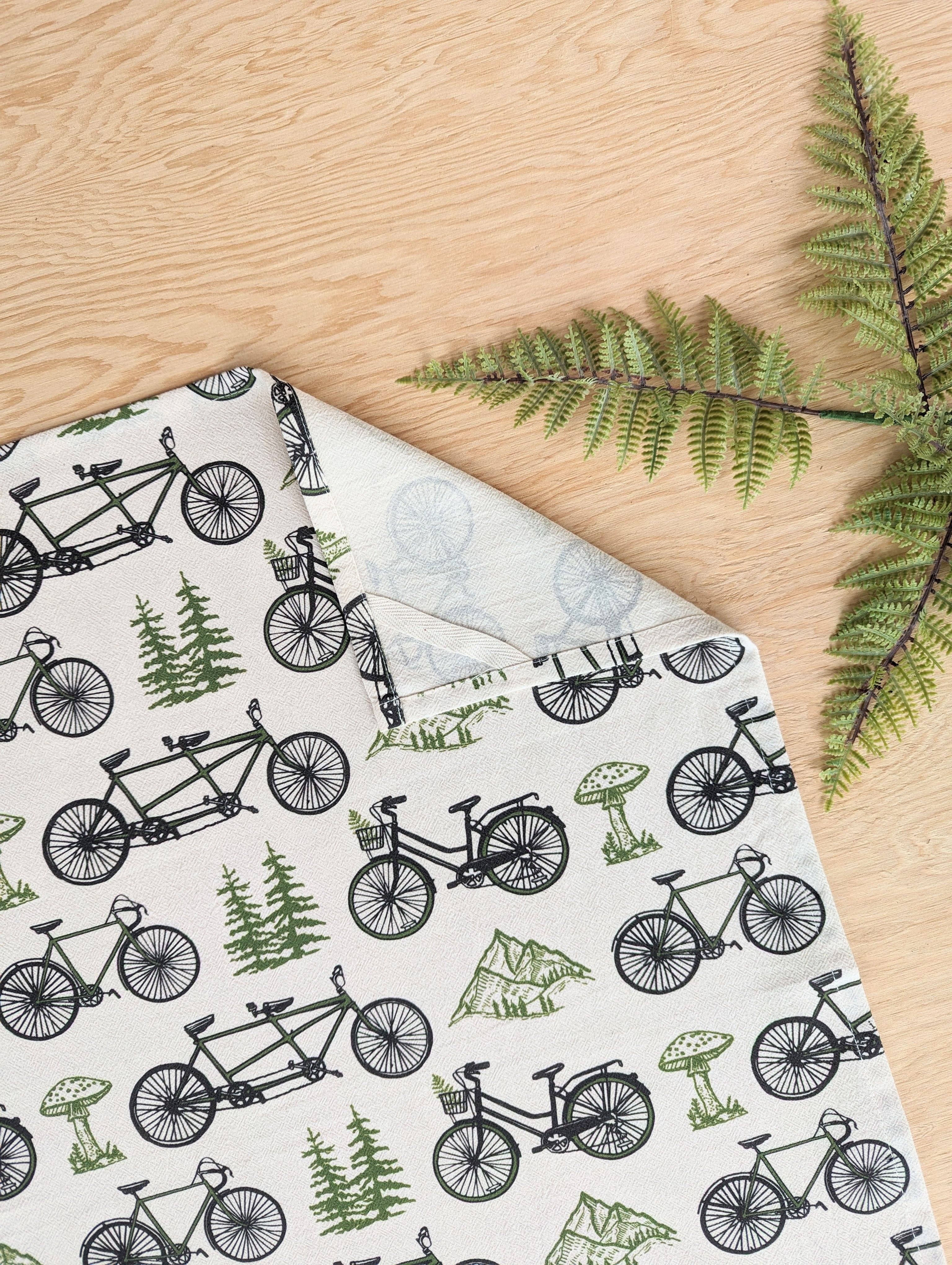 Our road bike sketch hand screen printed in charcoal or green on super soft, absorbent cotton flour sack towels! Screen printed in our studio with eco-friendly & durable water based ink. Towels are cured and ready to use. - 100% Cotton, made in USA - Towel Measures approximately 27 inches x 27 inches and features a handy hanging loop in the corner