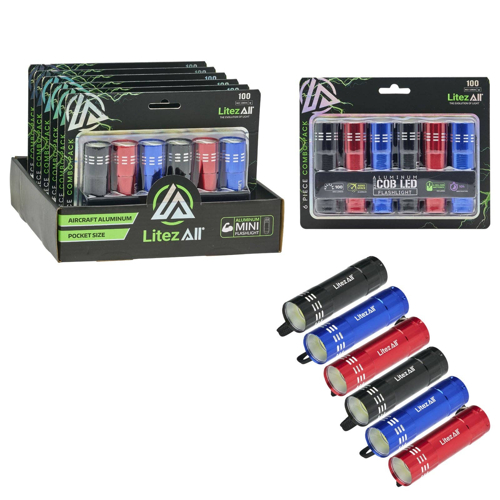 * Rechargeable for lasting light with each recharge * Includes Micro-USB charging cable * Non-replaceable 400 mAh lithium ion battery * LitezAll Blue & Black Rechargeable 120 Lumen Flashlight Set * Compact pocket size for easy carrying and storage * Provides up to 120 lumens of bright light * Two hours of illumination on high, four hours on low * Convenient strobe light feature Details Brighten up your nights with the LitezAll Blue & Black Rechargeable 120 Lumen Flashlight Set. Featuring a compact pocket size and up to 120 lumens of bright light, this flashlight set provides up to two hours of illumination on high and four hours of light on low. With a convenient strobe light and a non-replaceable 400 mAh lithium ion battery, plus a Micro-USB charging cable, you can enjoy lasting light with each recharge.