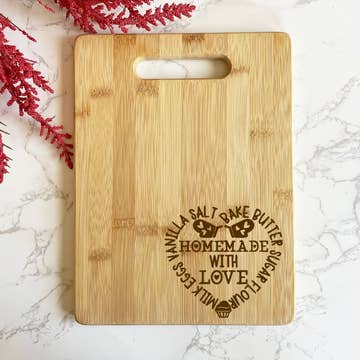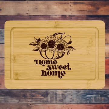 This is a popular bamboo board that can be used as a serving or bar board. The board will be engraved with the word "Home," using the silhouette of your State of choice for the letter "o". This board is offered in 2 different options. One option is the Striped Paddle Board, constructed with stripes of natural-colored bamboo for a stylish look. Measures 9" x 6" x 1/2". The other option is the two-tone flat-grain bamboo, capped with light, natural colored bamboo on each side. Measures 8" x 5-3/4" x 1/2" Care for your board: hand-wash only with warm, soapy water, then wipe dry. Treat the board with mineral oil. ** Please note that this board is made of natural bamboo. The light and dark of the grain vary from board to board. Each board will take the engraving process differently. There will be color variations to the engraving on each individual board. *** The preview pictures are for illustration purposes only.