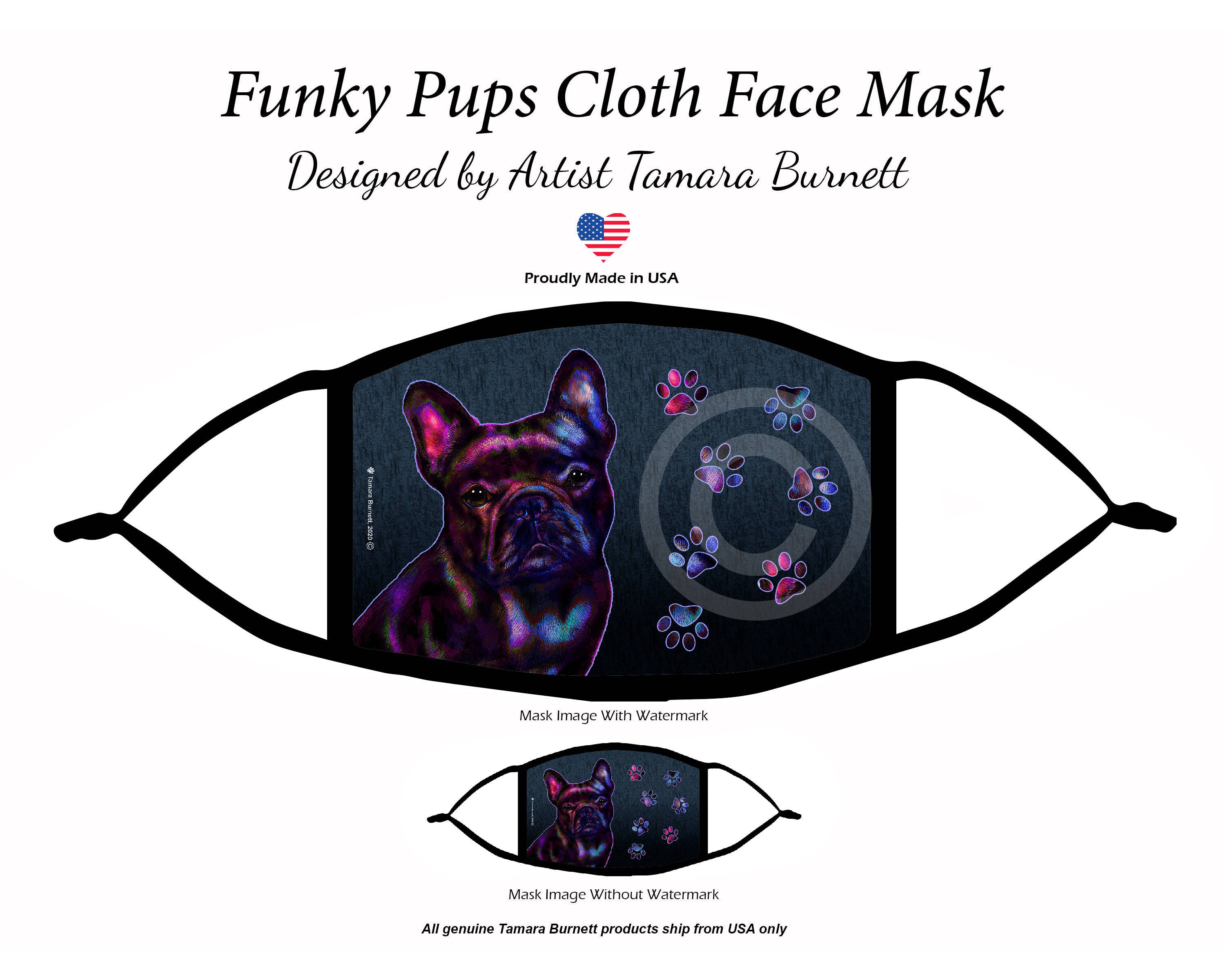 Regarding the Covid Collection of Masks: Daedre's Original Artwork 100% washable Hang or tumble dry. Secure mask with soft and stretchy ear loops and adjust fit with soft rubber toggle. Contains a malleable nose bridge to keep mask secure Made with a pocket to insert provided PM2.5 Filter Individually wrapped in clear packaging