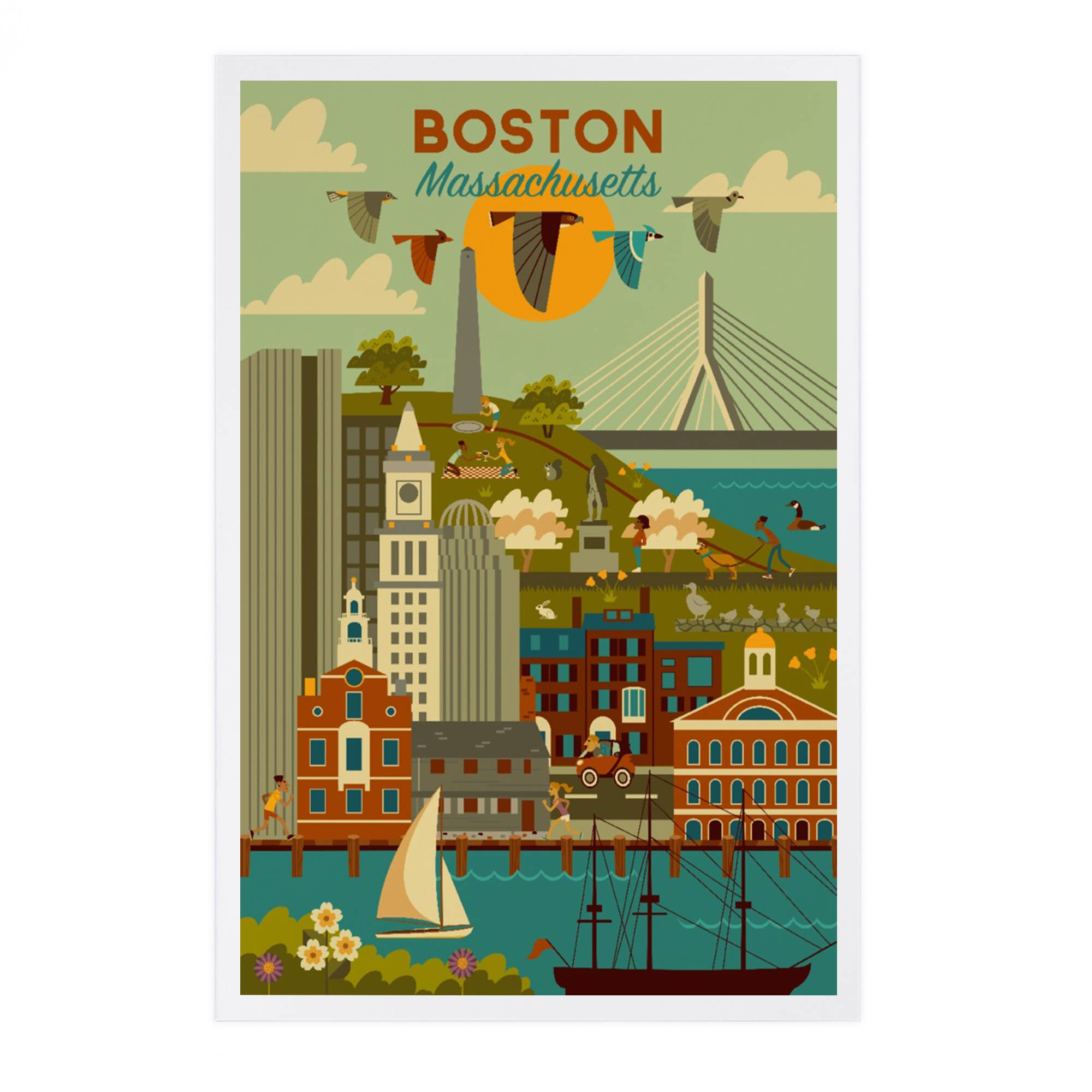 Say hello from Boston! Height: 4.2 Inches; Width: 5.5 Inches This postcard features some of the city's most well known buildings, including the Citco sign at Fenway, the Prudential Center and the Lenny Zakim Bridge. It was hand-lettered by one of Boston's own artists, me.
