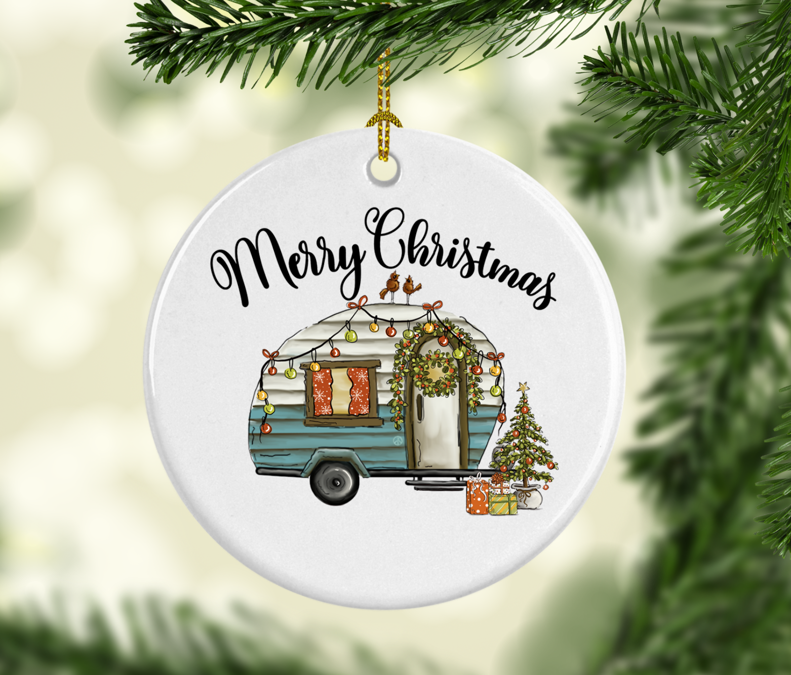 Merry Christmas 2025 Camper Ornament Wood Slice Shape