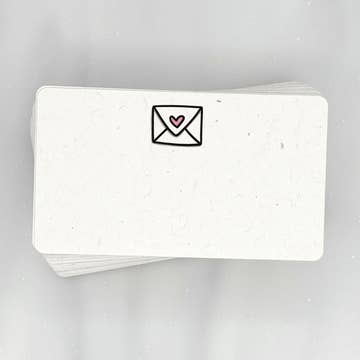 Sprinkle some magic into your messages with our adorable mini note cards! Perfect for Valentine's cards, gift tags, florist cards, place settings, business thank you cards, party favor cards, & more! These eco friendly mini note cards feature a cute envelope with a pink heart on it and are great for kids and adults alike. Design on the front. Blank on the back. Made from 100% Post Consumer Waste cardstock exclusively manufactured for Lemon Doodle. Featuring an elegant, antique texture front for a unique & premium feel, while boasting a smooth back surface to make writing easy & comfortable. All materials are sourced from within the USA. As a family owned business, we print, cut, & package these items ourselves from our studio in Connecticut. Quantity: 56 mini notes per pack Front: Hand drawn illustration Back: Blank Card Size: 2" x 3 1/2" Packaging: Packaged in a clear recyclable rPET box made from 100% recycled content Item dimensions when packaged: 3 5/8" x 2 1/8" x