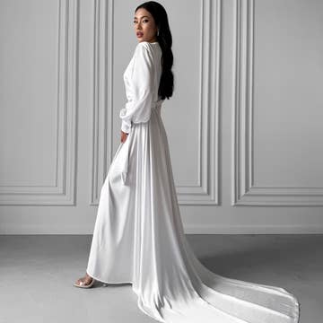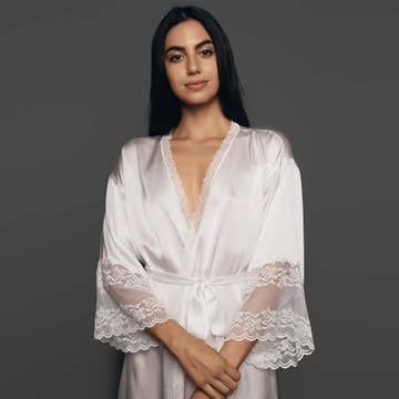 This light and airy robe is the perfect way to start the perfect day. The detailed embroidered laced design give this robe a unique elegance that you want on your wedding day. Elegant and Unique: An elegant twist on a traditional robe that will have you looking stunning while you're getting ready. Unlike any others, this robe is certainly a showstopper. Silky soft,High Quality Material: Super soft, luxurious, silky satin fabric, 80% polyester and 20% spadex creating the perfect combination of quality and comfort. This satin robe feels lightweight and skin-friendly. Inside and Outside Ties: Providing maximum security so you can feel covered and comfortable while you're getting ready. Perfect Wedding Day Gift: Perfect for everyday wear or to get ready for special occasions. Ideal bridal party robes/getting ready robes/bachelorette party robes for brides, bridesmaids, and moms and grandmas.