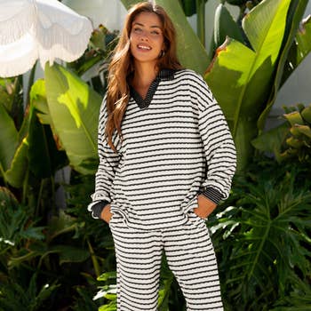 No reviews for Stripe Collared Pullover Top and Drawstring Pant Set yet.