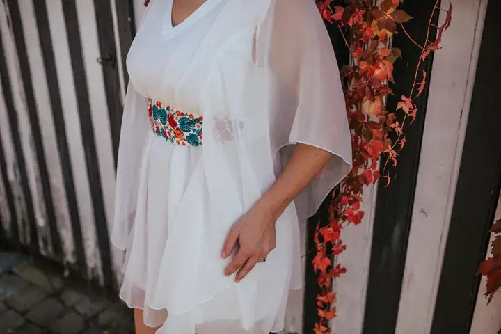 To brighten up your big day, we created these pretty dresses that will dress up your little girls of honor. The colors and style of these children's dresses are perfectly in line with the bridesmaids collection. It's enough to give yourself the most beautiful procession and give your wedding that touch you've been dreaming of. Tested and approved... they won't want to remove them <3. Description: * Semi elastic waist (mid-back) * Ties at the back * Small ruched sleeves embroidered with a slightly pink gold thread * Embroidery on the waist at the front of the dress * square neckline * Total length 55 cm (18 months-2 years), 58 cm (3-4 years), 60 cm (5-6 years), 65 cm (7-8 years), 70 cm (9-10 years), 75 cm (11 years), 80 cm (12 years) 100% silk-touched polyester that allows for a smooth, wrinkle-free and easy to maintain look for throughout the day.