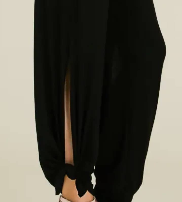 Split side tied hem pants. *model is wearing sample size small.