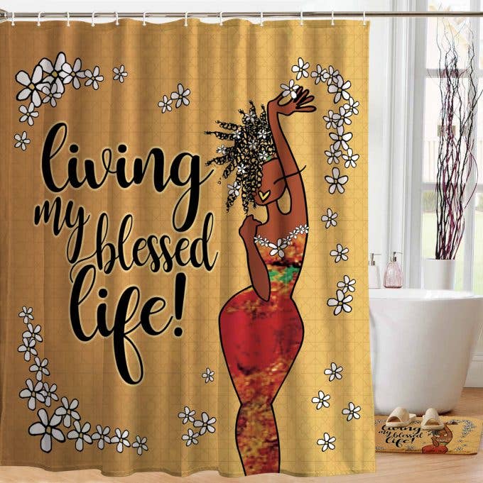 My customers love the living my blessed life shower curtain and matching foam mat!