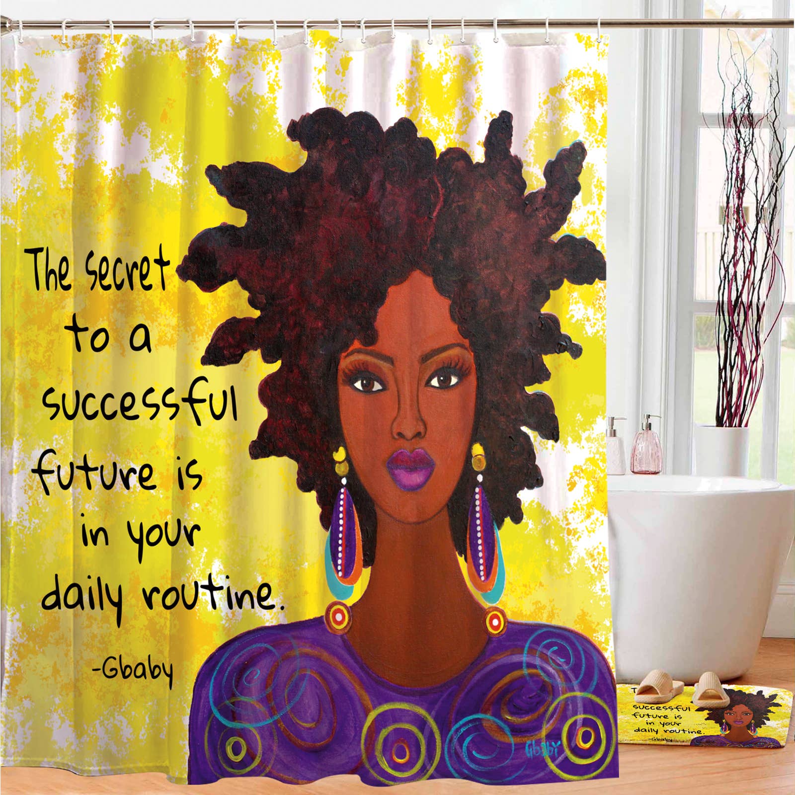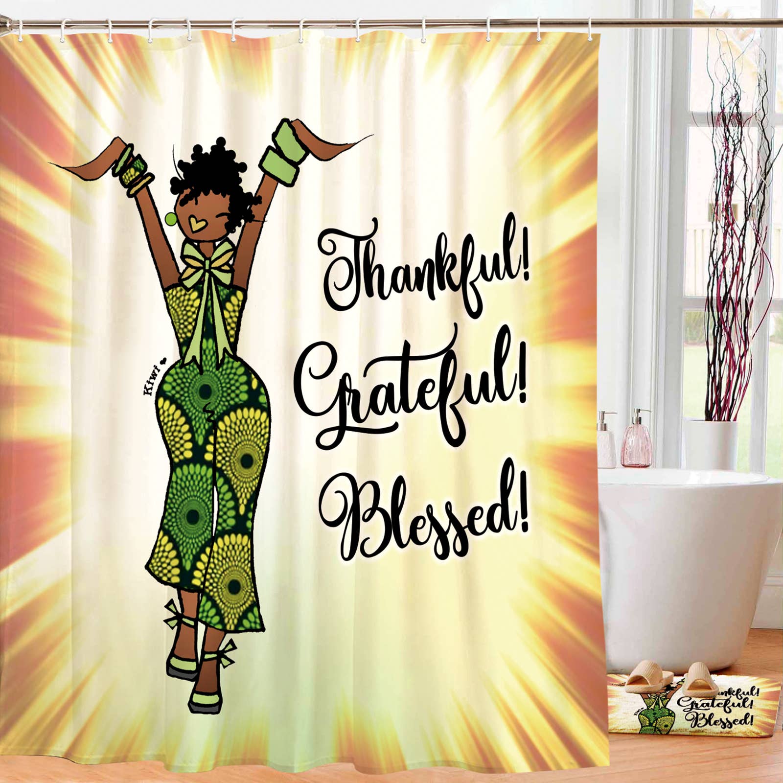 Everyone loves a good shower curtain. Shades of Color shower curtains will add dimension to your home and brighten up your bathroom! Our African American Home Collection is essential to any home decor. Uplifting Black Art for your home like you have never seen. This water-repellent polyester fabric shower curtain quickly dries while adding style to your bathroom. Shades of Color loves providing uniquely designed shower curtains that make your daily showers more comfortable. Our curtains are cool, trendy, colorful, melanin poppin, and cost affordable. Our curtains are also easy to hang and come with rustproof metal grommets. They are Mold, Mildew, and Soap Resistant. Be inspired by our line of affordable African American Shower Curtains – ethnic home decor by your favorite black artists. African American Home Accessories that Uplift & Inspire! • Includes 12 Plastic Hooks • Water repellent • Size: 70 x 74