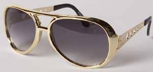 Discount Elvis Glasses Sold by 12 PackNow both you and your friends can rock out to rock and roll when you pick up one of our 12-packs of discount Elvis style glasses. These Elvis style glasses are perfect for any occasion where you need to represent "The King." Buy in bulk now to save money. All discount Elvis glasses in gold.