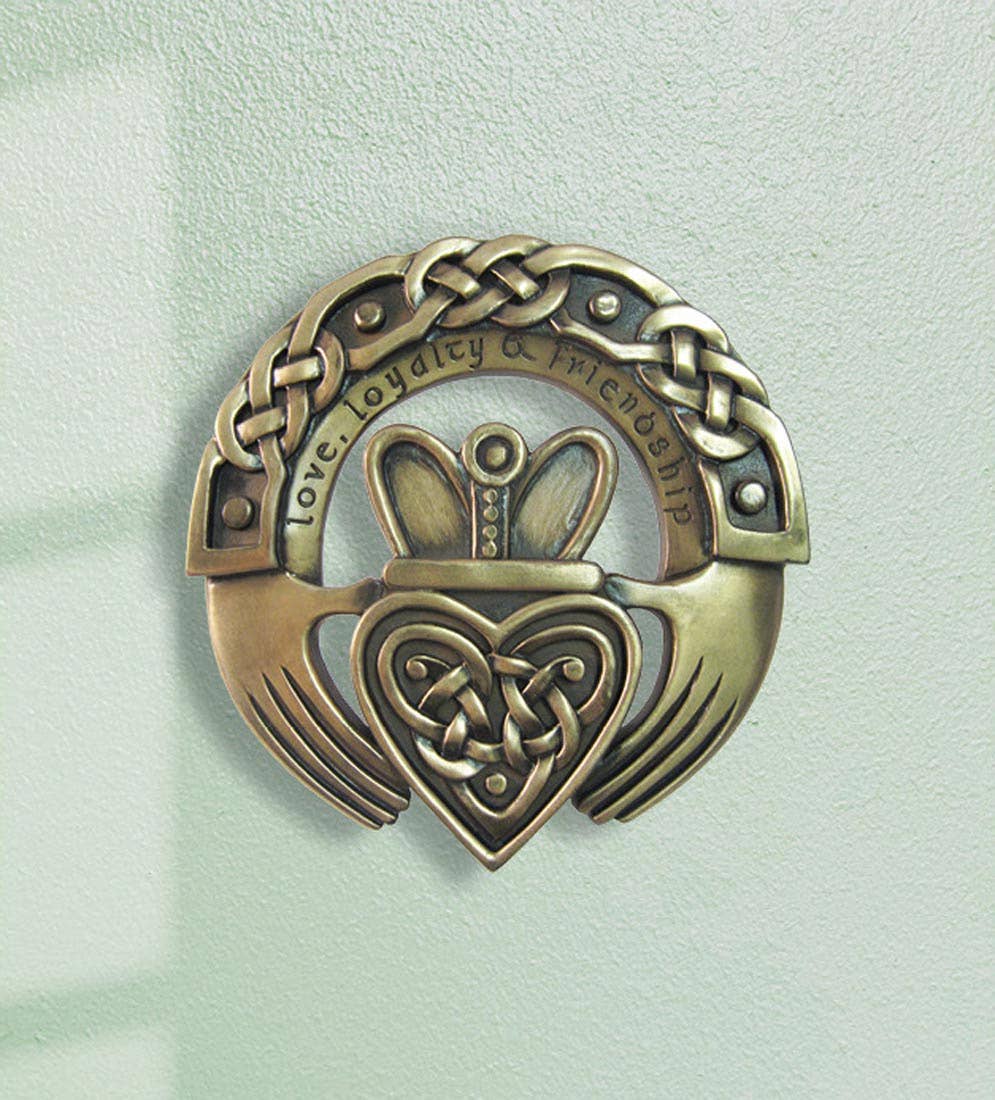 Featuring a gorgeous Irish blessing for the home written out in elegant scrawl, this gorgeously designed bronze plated wall plaque is perfect for any individual wishing to add some happiness, spiritual protection, or good feelings to their home. Bronze Plated for lasting Appeal, perfect for a new home gift, wedding gift, or as a good bye gift to colleagues Text of Blessing "May peace and plenty bless your home with joy that long endures, and may life's passing seasons bring the best to you and yours" It is surrounded by a gorgeously designed Celtic Trinity symbol border to produce a blessing that is as physically beautiful as it is spiritually and emotionally. The plaque measures 15 centimeters in height by 15.5 centimeters in width.