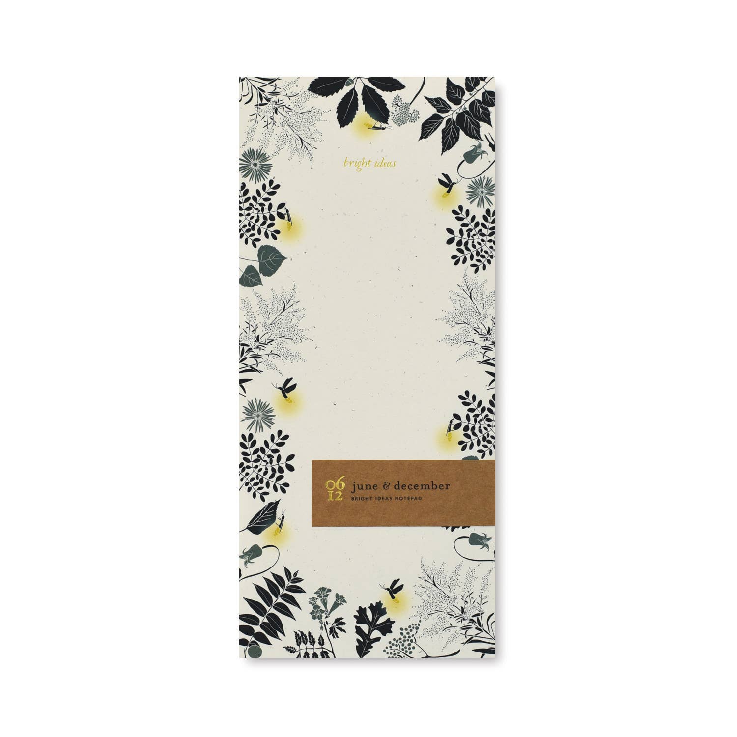 - Size : 4”x9” - Details : 55 sheets, speckled 100% recycled, heavyweight cream paper - Packaging : zero waste packaging, gold foil sticker, ready to display, clear bags available on request - Made : June & December / USA June & December notepads, desk pads, and mini notes are printed in Michigan on recycled paper. The paper is made and milled in Michigan with hydroelectric energy and contains 100% recycled pulp. The pages are heavy enough to use your favorite permanent marker.