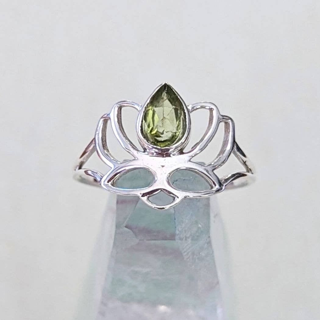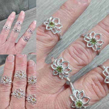 Lotus shaped statement style ring to add to your jewelry collection. Please pick your size and stone. Sold by the each.