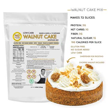 SKU: Carrot Cupcake & Cake Mix Made in United States Contains: Wheat Diet: Kosher Ingredients: Sugar, Wheat Flour, Carrot Granules, Baking Soda, Organic Cinnamon, Salt. Occasion Theme: Baby Shower, Easter, and Rosh Hashanah Production: No artificial sweeteners, No preservatives, and Non-GMO Season: Fall and Spring Shelf life: 6–12 months Storage: Shelf-stable Weight: 375.06 g (13.23 oz) Dimensions: 13.5 x 5.1 x 17.8 cm (5.3 x 2 x 7 in) GTIN: 00850016381286 Packaging: Recyclable