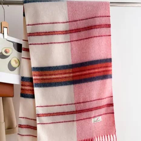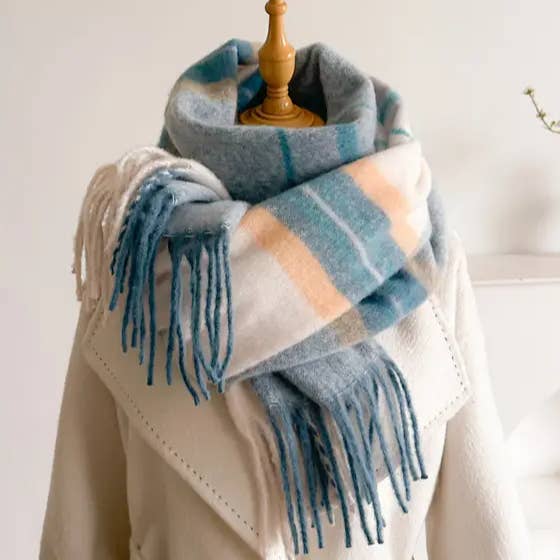 WOMEN STRIPED FRINGED PLAID SCARF_CWASC0331
