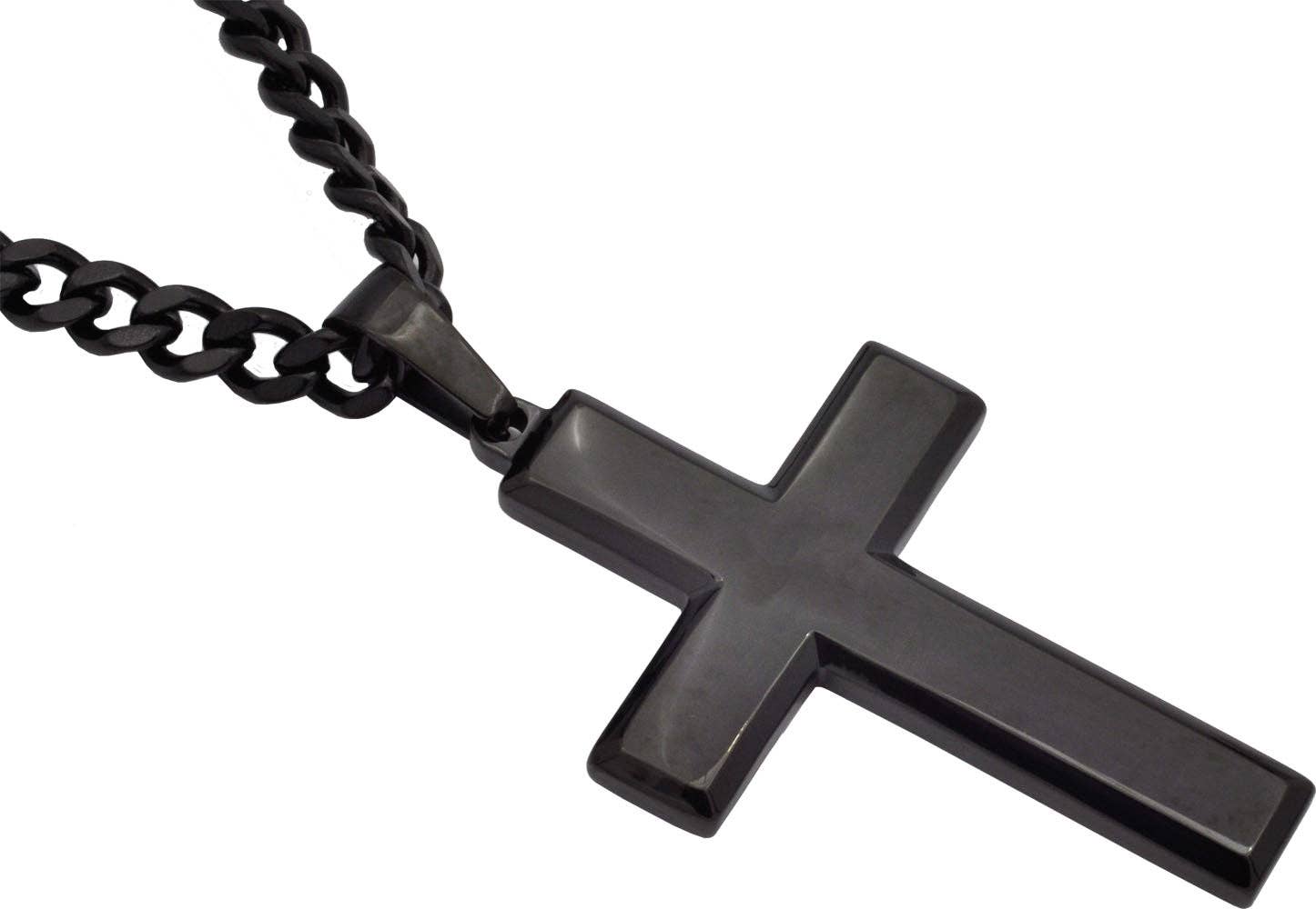 Wholesale Men's Black Stainless Steel Cross Pendant With 24" Curb Chain