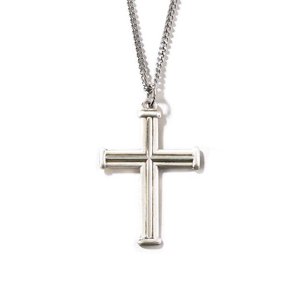 Cross length- 2 inch Cross width- 1 inch 24 inch stainless steel curb chain included 316L stainless steel Stainless Steel is hypoallergenic and doesn't change color