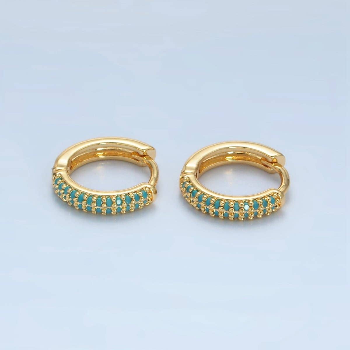 24K Gold Filled Emerald Green Micro Pave Cubic Zirconia 16.5mmx17mm Huggie Hoop Earrings | AD-507