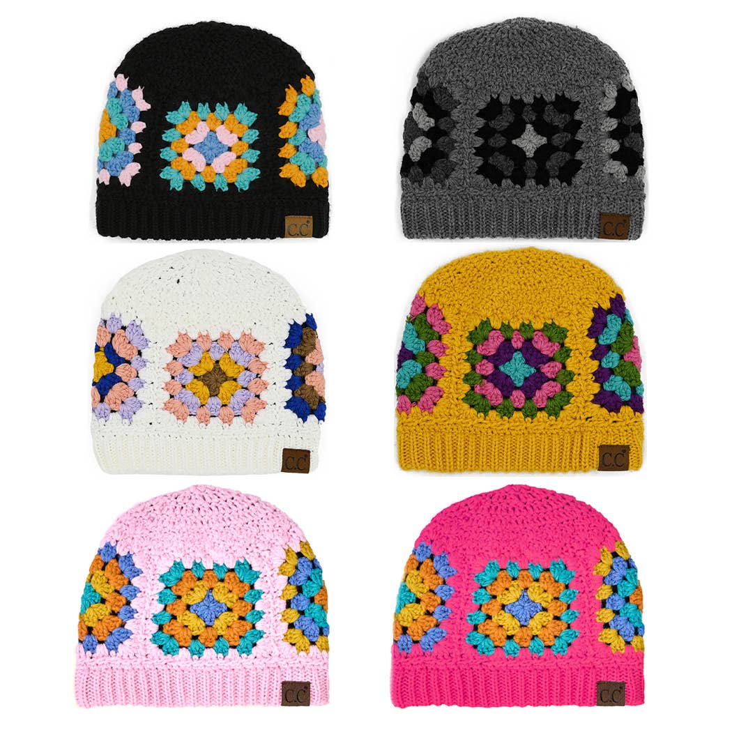 Colorful 3D Vintage Hollow-Out Boho Floral Crochet Beanie