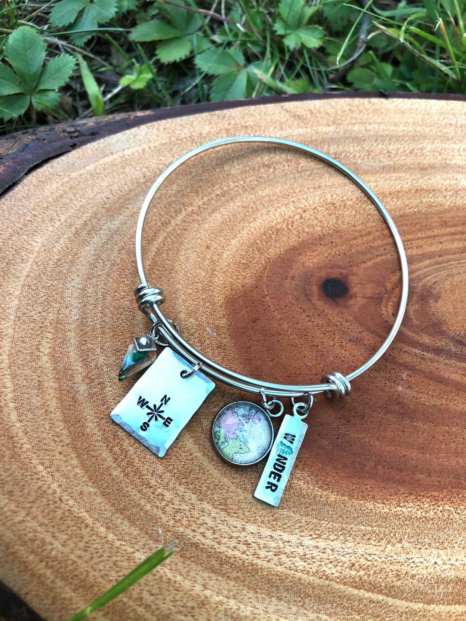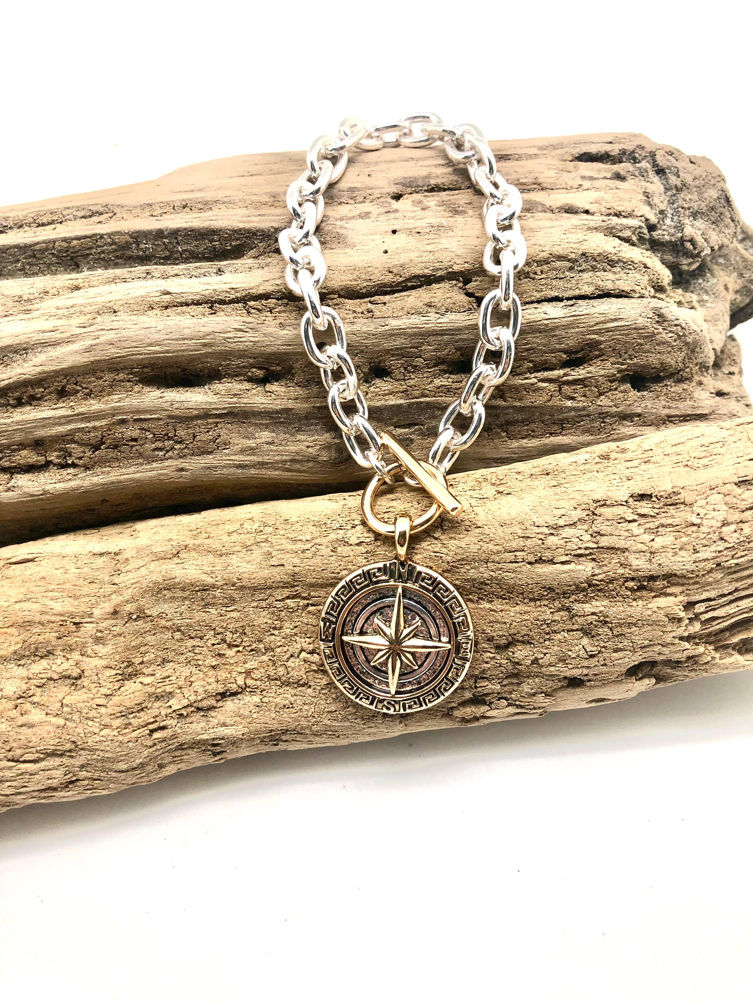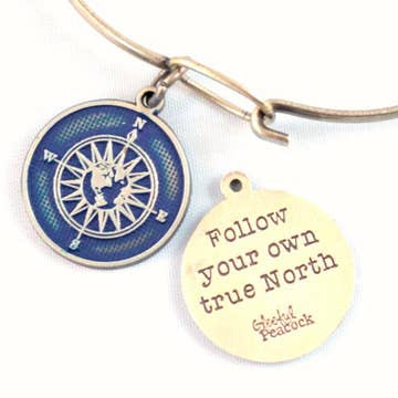 This charm is your reminder to Follow Your True North - your internal compass that points to your purpose in this world. It's illustrated with a compass, another reminder to stay on your unique path. Hand-painted in our Denver workshop. This bronze-tone charm measures 3/4" and comes with a jump ring. Charms come un-carded. Bracelets are antique brass bangle-style with a hook closure. One size fits most. Necklaces are 18" antique brass with lobster closure. All products are lead-free and nickel-free. This is a retired, limited-edition design.