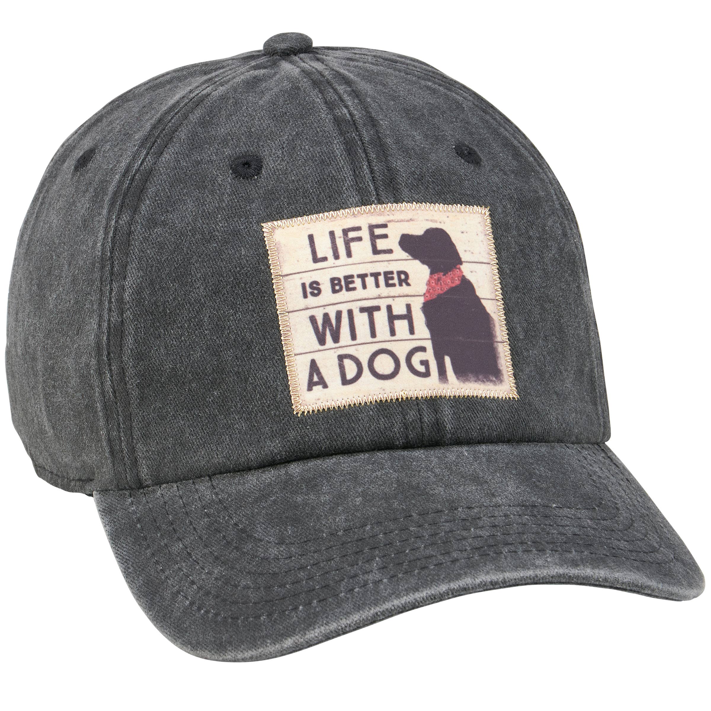 Wine is good. Dogs are great. People are crazy. Three things we can all agree on. This 100% cotton, black cap with embroidered icons is sure to bring a smile to their face. The unstructured, low profile, 6-panel cap also offers an adjustable slide closure with buckle. One size fits most. Happily designed and embroidered in the USA. Sold in Packs of 2. $10.00 each (2 ballcaps for $20.00)
