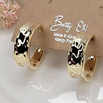 Modern and stylish, these hoop earrings feature an irregular Geometric oval shape accented with a sleek epoxy edge for a unique, artistic touch. Lightweight yet eye-catching, they're perfect for elevating both everyday looks and special occasion outfits. Product details: width: .75" length: .75" earring back: Post metal finish: gold Plating product: Lead & Nickel Compliant durability: Double E-coating Flower Earrings | Stud Earrings | Gift | Mom | Gold Earrings | Floral | Statement Flower Earrings | Dangle | Beads| Color Beads | Spring | Festival | Elegant