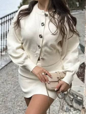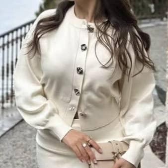 Unveil the pinnacle of knitwear elegance with our “Swastika Pattern Knit Top & Hip Skirt Set.” This exquisite two-piece suit, crafted with precision, features a suit collar top adorned with a captivating swastika pattern, symbolizing peace and prosperity. The heavy industry knit fabric ensures durability and comfort, while the golden buttons add a touch of luxury. The accompanying hip skirt, cinched with a sleek belt, flatters the silhouette, making it a versatile choice for both office and evening wear. Ideal for the discerning fashionista, this set is a testament to timeless style and sophistication.