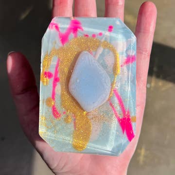 Experience the luxurious, mystical feel of Madame Bagnabit's Dragon's Blood soap bar. Handcrafted in rural Ohio, this soap offers an enchanting blend of nature, magic, and wonder. The mother-daughter duo, Kathy and Amanda, infuse their artistic spirit into every bar, ensuring a bath-time experience that is as unique and creative as you are. This soap is more than a cleansing routine, it's a unique product from a brand that values creativity and individuality. Enjoy the magic of Dragon's Blood soap bar and let your skin feel its magic.