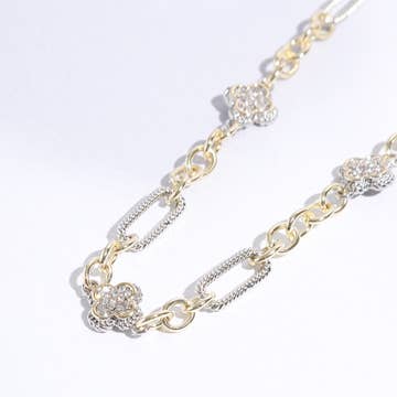 Wholesale 2 Tone 14K Gold Plated CZ Heart Quatrefoil Pendant Necklace