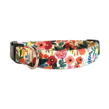 Your pup will look like a real peach in this hand-illustrated design by Cassidy Demkov, exclusively for The Foggy Dog. Our online sales DTC are split approximately 13% XS, 29% S, 33% M, and 25% L. DETAILS -Soft natural fabric on the outside and inside - perfect for sensitive pups with nylon allergies or chafing -Nylon webbing core can withstand over one thousand pounds of pull -Reinforced box stitches at all stress points -Luxe metal hardware MATERIALS AND CARE -100% cotton fabric exterior, nylon webbing interior -Hardware: gold zinc alloy with a solid brass D-ring -Hand wash or machine wash cold on delicate cycle inside a bag or pillowcase to protect the hardware. Air dry flat.