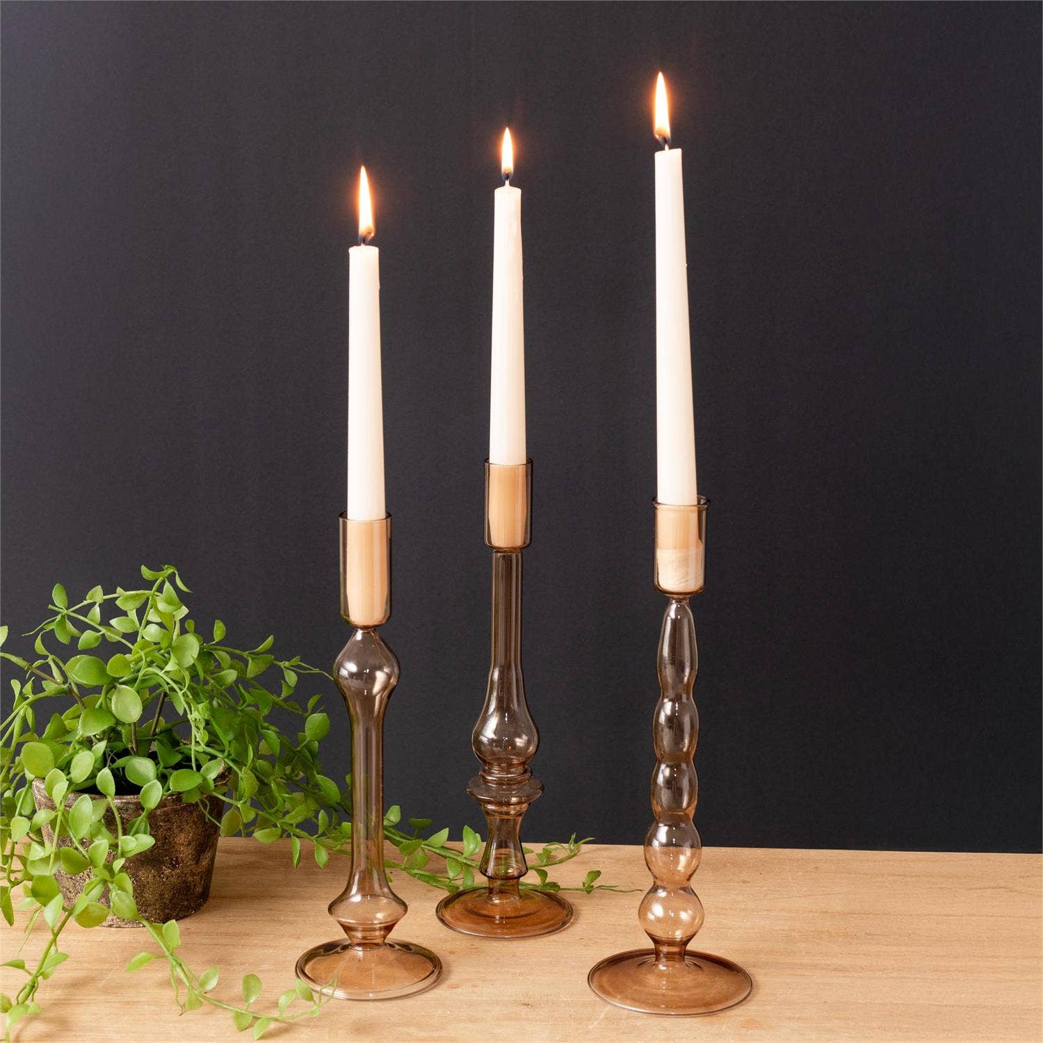 Wholesale Glass Candlestick Holder Taper Candle Holders Tabletop Amber