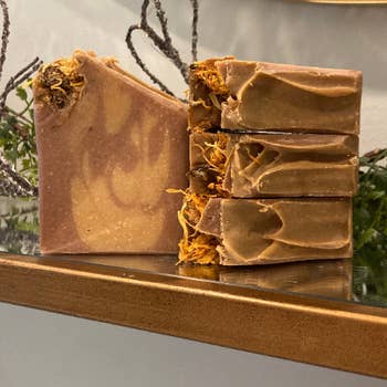 This new fragrance is becoming a quick favorite amongst the staff due to its vibrant, citrusy blend of ruby red grapefruit, bergamot, lavender, mint and cedar. Our soaps are made by hand in small batches, using the cold process method and only the finest ingredients. PLEASE NOTE: Bars are cut at approximately 6.5 ounces when the batch is fresh (the day after pouring). As the soap cures, it can lose up to 20% of its weight due to climate conditions, making the finished bar weigh around 5.2 - 6.5 ounces. These soaps are hand poured and hand cut, so please allow a bit of grace on finished bar size. All soaps are available for private labeling. Simply send a high resolution copy of your logo and we will take it from there! Ingredients: water, sodium hydroxide, Himalayan salt, arrowroot powder, coconut oil, RESPONSIBLY SOURCED palm oil, olive oil, cosmetic grade mica, jojoba spheres, dried orange slices, fragrance