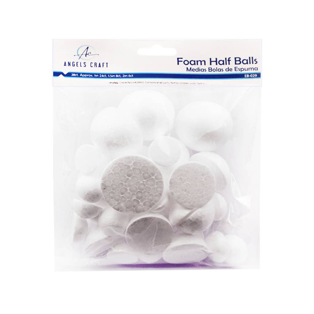 Set of 20 half-round foam balls, 2 inches wide. Great for school projects, crafts, DIY decorations, and art displays.
