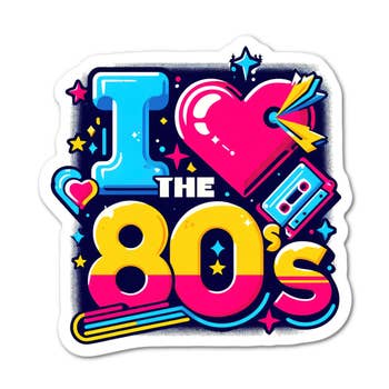 This nostalgic retro-style sticker with the text "I LOVE THE 80'S" displayed against a dark purple/black background captures the iconic aesthetic of 1980s design with its bold typography, neon colors, and futuristic grid elements - perfect for fans of retro pop culture, vintage aesthetics, or anyone feeling nostalgic for the era of cassette tapes, arcade games, and neon fashion. Waterproof! Can survive the dishwasher, but we don't recommend regular dishwasher exposure. Handmade in the USA. Not safe for children due to the choking hazard. Brought to you by Brain Shudder Studio.