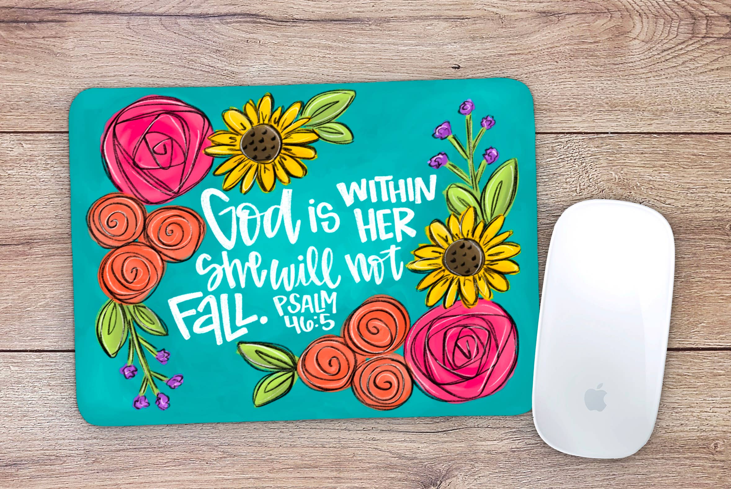 "El SeƱor Es Mi Roca" Christian Mousepad This beautiful Christian mousepad adds a touch of faith and inspiration to any desk. The design features a vibrant watercolor-style background with bright sunflowers, white daisies, and monarch butterflies. The Spanish phrase "El SeƱor es mi roca y mi fortaleza" (The Lord is my rock and my fortress) is elegantly scripted in the center. It's the perfect gift for colleagues, students, or anyone who wants a daily reminder of their faith while they work or study. Key Features: Material: Smooth polyester fabric with a non-slip rubber base (Sublimation Print) Design: Watercolor sunflower and butterfly pattern with "El SeƱor es mi roca y mi fortaleza" scripture Size: 9 inches x 8 inches Ideal for: Desks, home offices, and workspaces